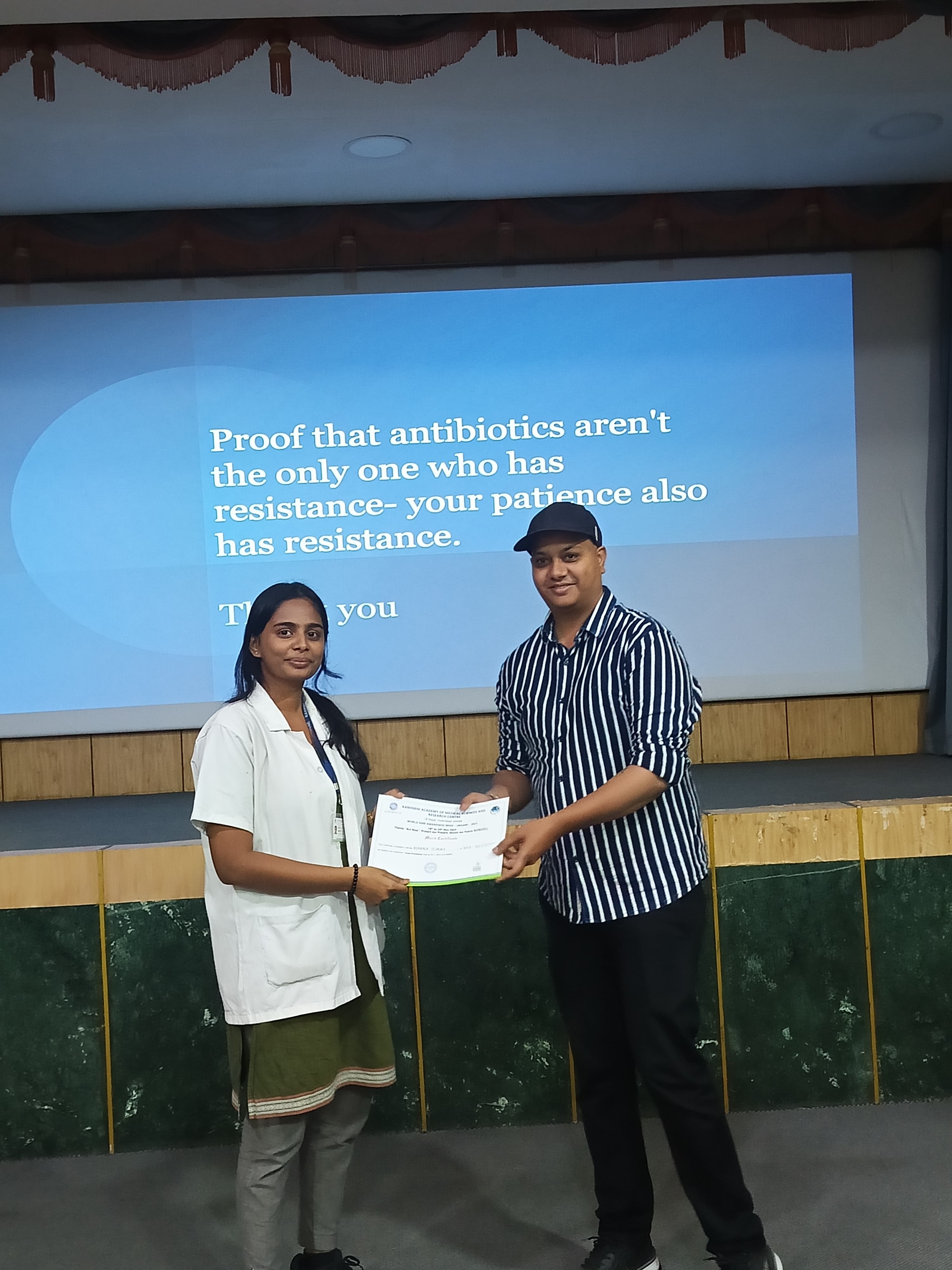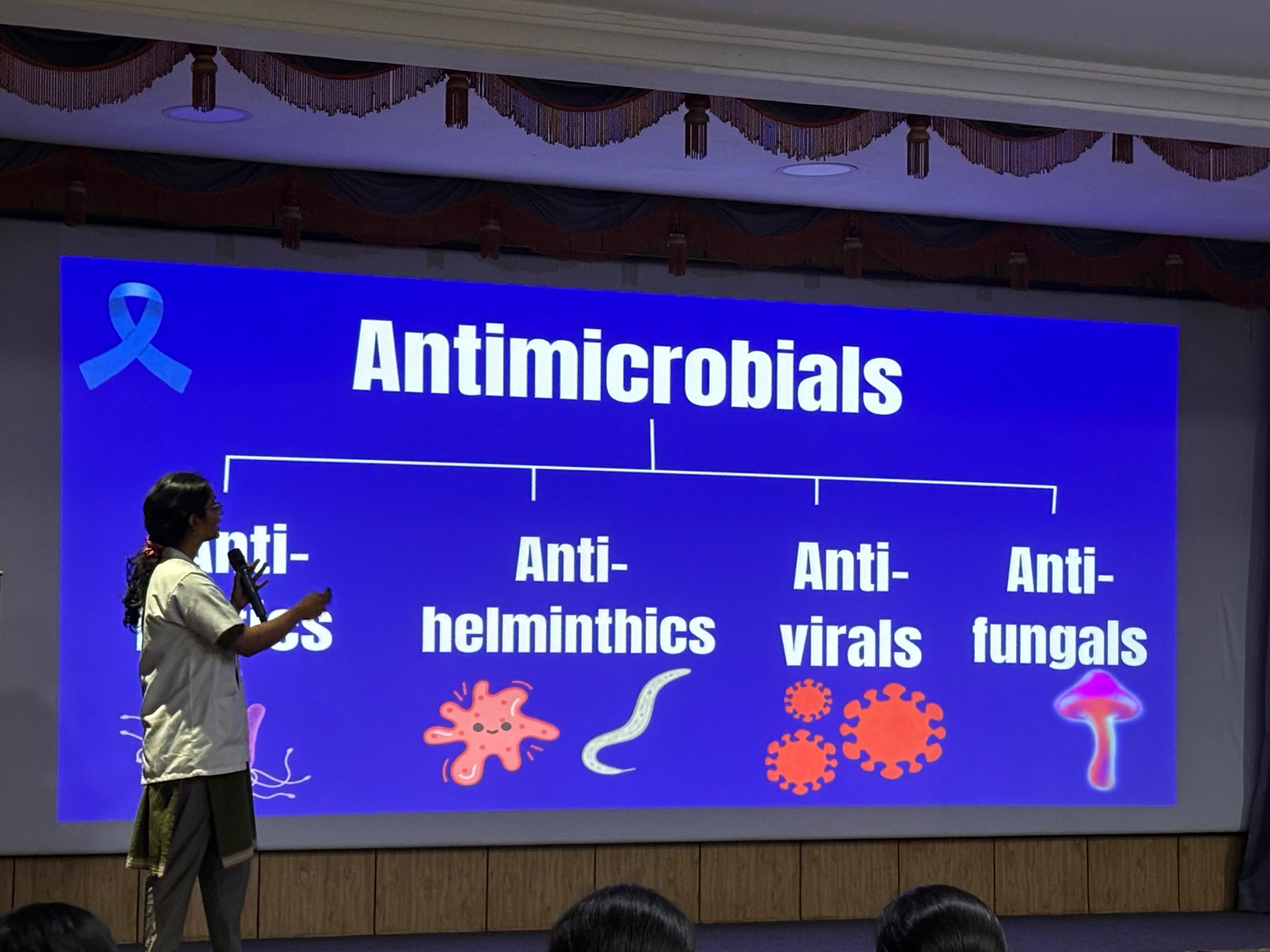 Students presented various topics related to antimicrobial awareness, and a quiz competition was organized for the 2024 batch on 26-11-2025.