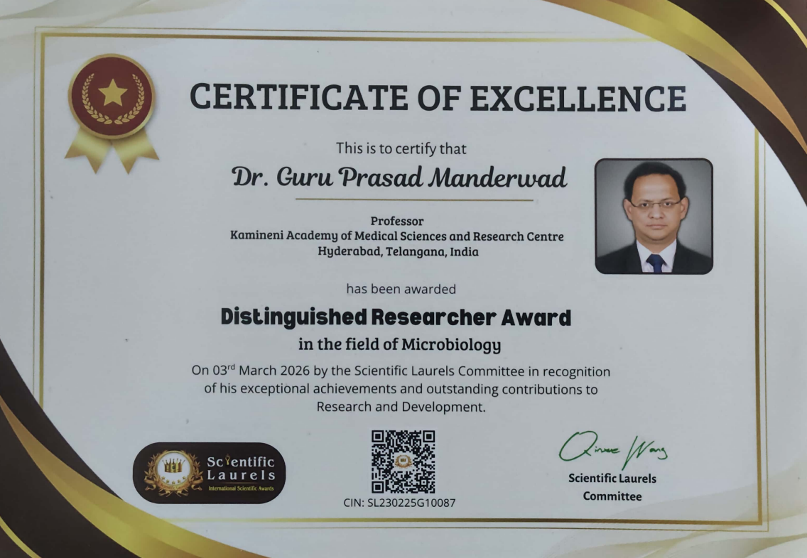 Dr. Guru Prasad Manderwad Awarded Distinguished Researcher Award by Scientific Laurels